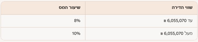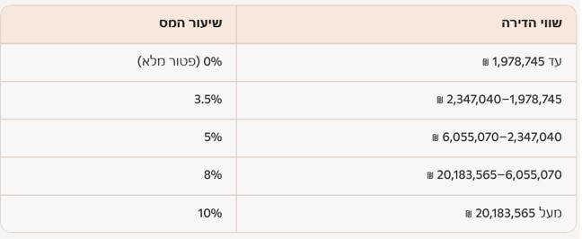 מדרגות מס רכישה לדירה יחידה (2025–2026):