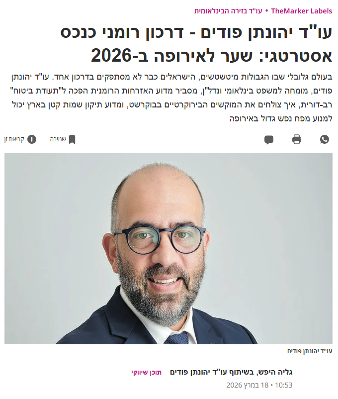 עו"ד יהונתן פודים – דרכון רומני כנכס אסטרטגי: שער לאירופה ב-2026
