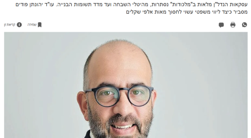 קרדיט: TheMarker להמשך קריאת הכתבה באתר TheMarker לחצו כאן >> עו"ד יהונתן פודים